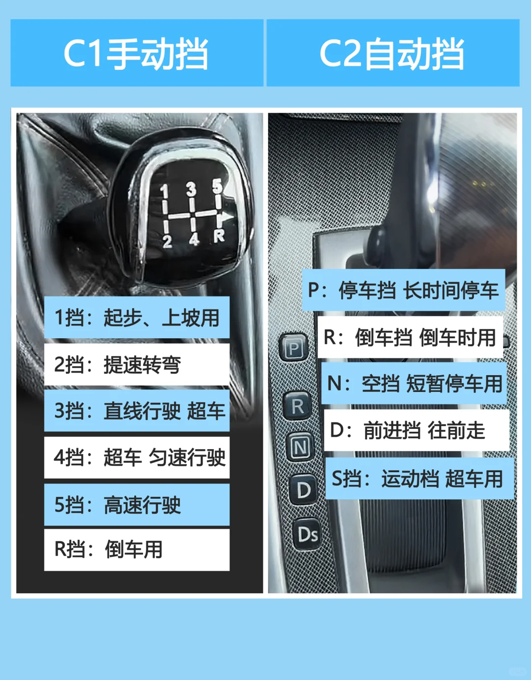 C1手动挡:可以驾驶手动挡汽车也可以驾驶自动挡汽车
